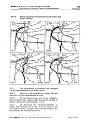 KARO + KONZEPT FÜR EINEN ATTRAKTIVEN ÖPNV 208 FÜR DIE REGION UND DAS OBERZENTRUM DORTMUND ANLAGEN A 8.6-2: Belastungsspinne Innenstadt Dortmund - Sektor Süd (Hagen, Herdecke) Stufe ITF-2: Der Hauptbahnhof ist Endstation und wichtigstes Ziel, die Umsteigebedeutung tritt deutlich zurück. Stufe 2 Auch hier ist der Hauptbahnhof vor allem Ziel: dem gegenüber tntt die Umsteigebedeutung zurück. Stufe 3 Die Belastungen bauen sich auf der Stadtbahn- achse Westfalenhallen - Brügmannplatz kontinuierlich ab. Ziele im Westen werden auch mit 2x-Umsteigen erreicht. Stufe 4 Die Bedeutung der Hauptbahnhofsanfahrt im "grünen Netz" reduziert sich auf ca. 70 % (vs. Stufe 2). Die Innenstadt wird direkt von Süden, aber auch nach Umsteigen aus der Schnelllinie am Hauptbahnhof erreicht. ARGE KARO + HHS - ISW - SÜDSTADT - HEUSCH/BOESEFELDT AACHEN 5.2001