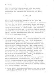 Pr. 136/74 - Ha Wegen der weiteren Einzelheiten des Sach- und $Streit- standes wird auf den Inhalt der Prüfakte und des Prüf- sgegenstandes, der Gegenstand der Verhandlung war, Bezug genommen . Gründe Was en eu rem an uam in yaaın ca anna mc Te Heft 5/74 der periodischen Druckschrift "DIE GRUPT VON GRAN DRAGULA" — MARVEL COMIC - war antragsgemäß zu indizieren. Der Inhalt des o.a. Heftes ist geeignet, Kinder und Jugend- liche sozialethisch zu verwirren, wie das Tatbestandsmerkmal "sittlich zu gefährden" in 8 1 Abs.2 Satz 1 Gj8 auszulegen rn ist. Ausnahmetatbestände nach 8 1 Abs.2 GjS lagen offensicht- lich nicht vor, wurden auch vom Verlag nicht geltend gemacht. Bin Fall geringer Bedeutung konnte schon mit Rücksicht auf 8 7 635 nicht angenommen werden, II. 1)An Schriften, die geeignet sind, Kinder und Jugendliche sitt- lich zu gefährden, nennt Satz ? von 8 1 Gj8 beispielhaft und nicht erschöpfend "unsittliche,verrohend wirkende, zu Gewalttätigkeit, Verbrechen oder Rassenhaß anreizende sowie den Krieg verberrlichende Schriften". Aus diesem Beispiel- katalog ergibt sich, daß das GjS die sittliche Jugendgefähr- dun g nicht auf die Sexualethik begrenzen, sondern auch und insbesondere auf die Sozialethik ausgedehnt wissen will. Deshalb ist nach der Rechtsprechung das Tatbestandsmerk- mal "sittlich zu gefährden" im 8 1 Satz 1 GjS im Sinne von 1) Die sozialethische Begriffs- und Wertbestimmung ergibt sich "sozi.alethisch zu verwirren" auszulegen. aus den Grundrechten des Grundgesetzes und den Gesetzen wie 2.B. Strafgesetzbuch und GjS. Zieht man diese Wertent- scheidungen heran, so sind zur Herbeiführung einer "sozial- etvhischen Begriffsverwirrung" und damit zur Jugendge fährdung unter anderem geeignet, Schriften, in FRE Pi run Asa Dany Arzt Bart Rap iz am dato 1) Zuletzt Urteil des Bundesverwaltungsgerichts vom 16.12.71 - [U 31,58 - abgedruckt in Heft 2 der Schriftenreihe der Bundesprüfstelle, Seite 11 ff. Be F \
