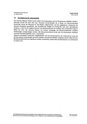 Laborbericht E310133 Projekt 231150 31. Oktober 2023 Seite 9 von 56 2.6 Durchführung der Laboranalytik Das Adsorber-Material TENAX wurde mittels Thermodesorption und GC-MS gemessen (MARKES TD100-xr, Shimadzu GC-MS OP 2010 Ultra bzw. Shimadzu GC-MS-QP2020, 60 m Säule). Zur Übersichtsanalyse (Screening) wurde die Messung im Scan-Modus aufgenommen und die angegebenen Substanzen’ mit externen Standards quantifiziert. Die Durchführung erfolgte als Einzelprobe nach dem akkreditierten Verfahren a DIN EN ISO 16000-6:2022-03. Die Messunsicherheit der Analytik ohne Probenahme liegt im Mittel bei 23%. Bei Interesse können auf unserer Homepage die Messunsicherheiten einzelner Verbindungen nachgeschlagen werden. Alle Messunsicherheiten wurde über ein kombiniertes Verfahren mit einem Erweiterungsfaktor von k = 2 berechnet. Aufgrund prinzipieller analytischer Gegebenheiten sind die Konzentrationen der Carbonsäuren sowie die der sehr polaren Verbindungen mit einer erhöhten Unsicherheit behaftet. Essigsäure besitzt aufgrund einer Blindwertproblematik eine signifikant erhöhte Unsicherheit, sodass diese Konzentrationen nur orientierend zu werten sind. Die Prüfergebnisse beziehen sich ausschließlich auf die Prüfgegenstände. Die auszugsweise Vervielfältigung des ‚Analytik Berichtes ohne unsere schriftliche Genehmigung ist nicht zulässig. Nur unterschriebene Berichte sind rechtsgültig ur 2!