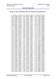 Tabelle zur Normalverteilung, Werte der Gaußschen Integralfunktion Φ