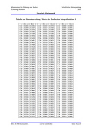 Ministerium für Bildung und Kultur Schriftliche Abiturprüfung Schleswig-Holstein 2011 Kernfach Mathematik Tabelle zur Normalverteilung, Werte der Gaußschen Integralfunktion ® gen = 2) | ©@) a 2011-M-H6-Stochastik-L nur für Lehrkräfte Seite 4 von 7