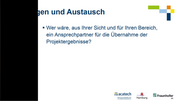 en und Austausch — = \Wer wäre, aus Ihrer Sicht und für Ihren Bereich, ein Ansprechpartner für die Übernahme der Projektergebnisse? ” id; 2 wacatech HR 4 Fraunhofer DEUTSCHE AKADEMIE D “ Hamburg Er TECHNIKWISSENSCHAFT!