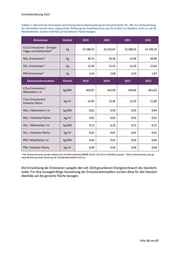 Tabelle 3: Übersicht der Emissionen und Emissionskennzahlentwicklung der Südkaserne