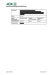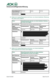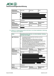 AOK® Datenschutzfolgenabschätzung Maßnahmen- sehr hoch sehr hoch hoch implementierung EEE Ton fe 7 Einschätzung Risiken NACH Maßnahmen- Ill. Risiko 6.1.3. Auskunftsersuchen nicht bzw. nur schwer bedienbar: Löschung der Daten nicht möglich Auskunftsersuchen nicht bzw. nur schwer bedienbar: Löschung der Daten nicht möglich ggf. Erläuterung . Versicherter hat die Hoheit über die Daten und kann eigenständig löschen. Es gibt ein Benutzerkonto Offboarding. Das führt zur sofortigen Löschung aller Daten und zum sofortigen Offboarding beider Services. Mit diesem Mechanismus wird das DSGVO Recht auf Löschung umgesetzt Und es gibt das Offboarding durch Einzug der Einwilligung. Das führt zur Kündigung innerhalb von zwei Wochen für den Service und anschließender Löschung der Daten für den Service. Dies wurde sowohl für AOK Netzwerk als auch ePA bereits konzipiert und umgesetzt. eigene Schadensausmaß Bewertung der Einschätzung VOR Risiken Maßnahmen- Re ED eigene Schadensausmaß Bewertung der Einschätzung Risiken Stand: 16.11.2022 Seite 36 von 39