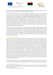 work on the assessment focusing on shelters for migrant women and children (see section 6). In