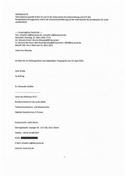 DATENSCHUTZ InformationengemäßArtikel 13 und 14 der Datenschutz-Grundverordnungund § 55 des Bundesdatenschutzgesetzessind in der Datenschutzerklärungaufder Internetseite des BundesamtsfürJustiz veröffentlicht. --Ursprüngliche Nachricht-- Von: schaefer-al@bmj.bund.de <schaefer-al@bmj.bund.de> Gesendet: Dienstag, 21. März 2023 17:13 An: Wessely Kirstin<Kirstin.Wessely@BfJ.Bund.de> Cc: Barsche Bernhard <Bernhard. Borsche@BfJ. Bund. de>; IIIB7@bmj. bund. de Betreff: WG: Ihre E-Mail vom 16. März2023 Liebe Frau Wessely, ich bitte Sie um Stellungnahmezum beigefügtenVorgangbis zum 14. April 2023. Viele Grüße l m Auftrag Dr. AlexanderSchäfer Leiter des Referates III B 7 Bundesministerium der Justiz (BMJ) Telekommunikations- und Medienrecht; DigitalerGewaltschutz;E-Privacy Postanschrift: 11015 Berlin Dienstgebäude:LeipzigerStr. 127-128, 10117 Berlin Telefon: +49 30 18 580 9327 . Mobil: E-Mail:schaefer-al@bmj.bund.de Internet: www.bmj. de