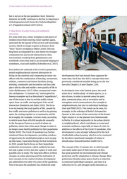 2 Future topics of the second horizon scanning cycle but is not yet at the pre-pandemic level. However, domestic air traffic continues to decline in importance (Arbeitsgemeinschaft Deutscher Verkehrsflughäfen e.V. (Flughafenverband ADV) (2022). 2. New forms of urban living and settlement structures For some time now, urban workplaces and places of residence have been moving closer together again, motivated by the spread of the service and knowledge society, which no longer requires a distance from “dirty” factory workplaces (Maier 2020). This has long been accompanied by a new desire for stronger community ties and social interaction in cities. Uncertainties resulting from globalisation and worldwide crises thus lead to an increased longing for rootedness, trust and stability (Schreiber et al. 2017). Even before the outbreak of the Covid-19 pandemic, model neighbourhoods showed alternatives to living on the outskirts and commuting to inner-city developments that had already been apparent for offices with the combination of housing, restaurants, some time, but it has also led to concepts that were utilities, commerce and leisure facilities; living, previously considered sensible being put to the test working, community and recreation can thus take (see also Chapter 2.8 and Chapter 2.10). place side by side and enable a new quality of life in cities (Beilhammer 2017). Often summarised under In developed cities with limited space, the need the catchphrase “15-minute city” and inspired by arises for a “multicoding” of urban spaces, i.e. a famous examples such as Barcelona’s “superblocks”, mix of uses, in order to provide areas for sport, one of the issues is how to reclaim public urban play, communication, rest or recreation and to space from car traffic and repurpose it for social strengthen social connectedness, for example in interaction (Dambeck and Zuber 2020). The focus neighbourhoods, but also in individual buildings is on increasing the local quality of life, caused by (Just and Plößl 2021). This trend can be seen, for less traffic and noise pollution as well as by gaining example, in the redesign of Berlin’s Schumacher space for coming together as a community and for Quarter in the course of the conversion of the former local supply, for example. A recent study, according Tegel Airport or in the planned new Siemensstadt to which more than 400,000 people die annually in Berlin. It is about regionality in the urban district in the European Union as a result of urban air or neighbourhood, which contributes to social and pollution, shows that cities must change in order to economic resilience, especially in times of crisis. In no longer cause health problems for their population addition to the effects of the Covid-19 pandemic, this (Beller 2020). The Covid-19 pandemic has further development is also strongly influenced by the lack reinforced these developments, providing windows of affordable urban housing, which is to be countered of opportunity for model/pilot projects such as pop- by the above-mentioned examples of urban re- up bike lanes. Especially during the first lockdowns densification (Zukunftsinstitut GmbH 2021). in 2020, people had to focus on their immediate residential environment, which suddenly became The concept of the 15-minute city, in which people not only a place to live, but also a place to work and can easily make most of their journeys on foot, possibly also to study. The long-term effects of these has great potential for environmental and climate changes on urban planning and the realisation of protection and for adaptation to climate change. More new concepts in the context of urban development pedestrian-friendly urban spaces lead to a reduction are ambivalent even after two years of the pandemic. in motorised individual transport, and thus to a This is because the pandemic has reinforced some reduction in CO2 and nitrogen oxide emissions as 40