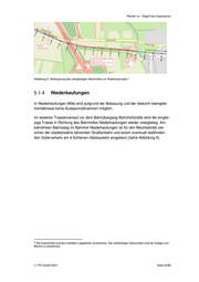 Planfall 1a – RegioTram Expresslinie Abbildung 8: Darstellung der notwendigen Maßnahmen bei v = 80 km/h Die Anpassung der Trassierung auf durchgehend 80 km/h ermöglicht eine Reduzie- rung der Fahrzeit bei gleichzeitig minimalem baulichen Aufwand. Größere Eingriffe sind bei der vom Auftraggeber vorgeschlagenen Erhöhung auf 100 km/h notwendig. Die eingesetzten Zweisystemfahrzeuge erreichen eine Höchstgeschwindigkeit von 100 km/h. Somit wäre theoretisch der Ausbau auf die- ses Geschwindigkeitsniveau denkbar. Zusätzlich zu den dargestellten Maßnahmen für durchgängig 80 km/h ist es für den Ausbau der Umfahrung Kaufungen auf die höhere Geschwindigkeit nötig die Radien anzupassen. Daraus ergibt sich eine Ver- schiebung der Trasse in ihrer Lage. Das Gleis ist bei km 20+400 um ca. 10,5 m nach Süden und bei km 20+800 um ca. 11,5 m näher an die dort vorhandene süd- westliche Bebauung zu verschieben. Abbildung 9: Darstellung der notwendigen Maßnahmen bei v = 100 km/h In der Folge muss hierfür zusätzlich zum neu herzustellenden Unterbau eine Ver- breiterung des bestehenden Dammes erfolgen. Am Ortseingang von Oberkaufun- gen führt die Verschiebung zu einem Konflikt mit den dort verlaufenden Straßen- bahngleisen. Die zwei Gleise einschließlich der Oberleitung müssten ebenfalls um die bereits erwähnten ca. 11,5 m in Richtung der dortigen Bebauung verschoben werden. Neben einem notwendigen Umbau des Bahnüberganges am Struthweg führt dies insbesondere zum Wegfall des Schoppenbergweges und der Gärten vor TTK GmbH 03/21 Seite 28/98