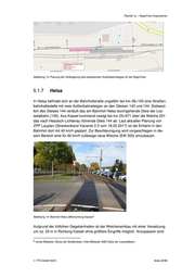 Planfall 1a – RegioTram Expresslinie im Wesentlichen die Gleislagen 141 und 143, die Oberleitung sowie geringfügig der nordöstlich gelegene PKW-Parkplatz. Hier fällt wahrscheinlich die gleisnahe Park- reihe künftig weg bzw. die dortige Parkstandanordnung muss neu geplant werden. Überschläglich ist durch die neue Weiche mit einer Zeiteinsparung von ca. 10 Se- kunden zu rechnen. Abbildung 15: Verschiebung Weiche W201 am Bahnhof Helsa (in Richtung Kassel) In Fahrtrichtung Hessisch-Lichtenau führen nach der Haltestelle Bahnhof Helsa die Weichen 202 und 203 die Gleise 144 und 145 wieder zu einer eingleisigen Strecke zusammen. Hier ist insbesondere der Ersatz der Weiche 203 durch eine mit 80 km/h befahrbare Weiche sinnvoll. Dies ist ebenfalls mit einer Weichenverlegung möglich. Die neue Weiche befindet sich heute vor dem Bahnübergang km 26,2 und verschiebt sich um ca. 88 m in den Bereich zwischen BÜ und der B451 (auf ca. km 26+334). Der eingleisige Bahnübergang wird somit künftig zweigleisig. Das Gelände nach dem BÜ selbst ist unbebaut und kann so für die Verschiebung ge- nutzt werden. Die Weiche 202, welche die Verbindung der Gleise 142 und 144 her- stellt, muss in diesem Zuge ebenfalls mit verschoben werden. Die neue Lage der Weiche ergibt sich u.a. aus dem zu berücksichtigenden Durchrutschweg. Eine (wünschenswerte) Einfahrt in den Bahnhof Helsa aus Richtung Hessisch-Lichtenau mit 60 km/h hätte jedoch zur Folge, dass ein ca. 100 m langer Durchrutschweg bis zur Weiche 202 notwendig ist. Dadurch würde aber der BÜ km 26,2 dreigleisig wer- den und die Weiche im Bahnübergang sich befinden. Dieser Aufwand einschließlich des dann wahrscheinlich vollständig wegfallenden PKW-Parkplatzes im Bereich Bahnhofstraße/ Im Schottenhof wird aus Gründen der nicht gegebenen Verhältnis- mäßigkeit nicht empfohlen. Bei einer Geschwindigkeit von 40 km/h würde jedoch der zu berücksichtigende Gefahrpunktabstand (Durchrutschweg) 50 m betragen. Somit kommt die verschobene Weiche 202 vor dem Bahnübergang auch künftig zum Liegen (ca. km 26+200). Die neue Infrastruktur in Helsa würde somit eine Verschiebung und einen Neubau der Weichen 201, 202 und 203 beinhalten. Aus Kassel kommend wäre dann eine abgestufte Geschwindigkeit von 60 km/h auf 40 km/h möglich (IST-Zustand 40 km/h auf 20 km/h). Damit würde die Einfahrgeschwindigkeit um jeweils 20 km/h TTK GmbH 03/21 Seite 33/98