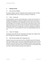 Vertriebskonzept ANDI 5 Roadmap Vertrieb 5.1 Nach räumlicher Gültigkeit Die räumliche Gültigkeit umfasst den Ticketerwerb sowie die Ausgabe der Karten. Die Prüffä- higkeit der ID-Based Tickets muss von Anfang an im gesamten hvv möglich sein. 5.1.1 Phase 1 – Hamburg AB Um die Komplexität zu minimieren und erste Erfahrungen zu sammeln, wird in der Phase 1 im Tarifgebiet Hamburg AB die hvv Prepaid Card eingeführt und Januar 2024 der Barverkauf in allen Bussen der HOCHBAHN und VHH abgeschafft. Dies hat den Vorteil, dass zum Start An- fang 2024 lediglich VHH und Hochbahn mit den Prozessen im Bus fertig sein müssen und die übrigen Busunternehmen zwei Jahre Zeit haben bis Ende 2025, anhand der Erfahrungen der beiden großen Unternehmen ihre Anpassungen vorzunehmen. Unabhängig vom Projekt klärt die VHH mit ihren AT, zu wann die übrigen VHH-Linien in SH komplett bargeldlos werden kön- nen. 5.1.2 Phase 2 HVV Tarifgebiet Das Bezahlen mit der ANDI-Karte wird in allen Bussen in den Ringen A bis F realisiert. Außer- dem ist die ANDI-Karte im gesamten hvv Gebiet erwerbbar. 5.2 Nach POS (Servicestellen, SST, Fahrpersonal, etc.) Analog der Phasen sind im ersten Schritt die SST der HOCHBAHN sowie die PVS-Geräte der VHH und der Hochbahn relevant. Zudem soll ein Drittdienstleister gefunden werden, der die An- forderungen an räumliche Dichte und zeitliche Verfügbarkeit sicherstellt. Da dieser voraussicht- lich auch im erweiterten Umland tätig ist, werden der ANDI-Kartenkauf und das Aufladen bereits in der Phase 1 über die Anforderung „Hamburg“ hinaus möglich sein. 28.05.2021 Version 1.4 Seite 12 von 21
