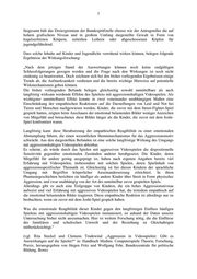 7 Insgesamt hält das Dreiergremium der Bundesprüfstelle ebenso wie der Antragsteller die auf hohem grafischem Niveau und in großem Umfang dargestellte Gewalt in Form von kugelzerfetzten Körpern, zerteilten Leibern oder abgeschossenen Köpfen für jugendgefährdend. Dass solche Inhalte auf Kinder und Jugendliche verrohend wirken können, belegen folgende Ergebnisse der Wirkungsforschung: „Nach dem jetzigen Stand der Auswertungen können noch keine endgültigen Schlussfolgerungen gezogen werden und die Frage nach den Wirkungen ist noch nicht eindeutig zu beantworten. Doch zeichnen sich bei den bisher vorliegenden Ergebnissen einige Trends ab, die Aufmerksamkeit verdienen und die bereits wichtige Hinweise auf potentielle Wirkmechanismen geben können. Die bisher vorliegenden Befunde belegen gleichzeitig sowohl unmittelbare als auch langfristig wirksam werdende Effekte des Spielens mit aggressionshaltigen Videospielen. Als wichtigster unmittelbarer Effekt konnte in zwei voneinander unabhängigen Maßen eine Einschränkung der empathischen Reaktionen auf die Darstellungen von Leid und Not bei Tieren und Menschen nachgewiesen werden. Kinder, die zuvor mit dem Street-Fighter-Spiel gespielt hatten, zeigten beim Anschauen der emotional belastenden Bilder weniger Anzeichen von Mitgefühl und betrachteten diese Bilder länger als die Kinder, die zuvor mit dem Joshi- Spiel konfrontiert waren. Langfristig kann diese Herabsetzung der empathischen Reagibilität zu einer emotionalen Abstumpfung führen, die einen wesentlichen Hemmmechanismus für das Aggressionsmotiv schwächt. Aus den dargestellten Befunden ist eine solche langfristige Wirkung des Umgangs mit aggressionshaltigen Videospielen ableitbar. Es scheint, als würde durch das Spielen mit aggressiven Videospielen die dispositionelle Sensitivität gegenüber emotionalen Zuständen anderer herabgesetzt. Die Kinder, deren Mitgefühl für andere gering ausgeprägt ist, haben nach eigenen Angaben bereits viel Erfahrung mit Videospielen, insbesondere mit solchen Spielen, deren Spielinhalt von aggressionsspezifischer Thematik ist. Gleichzeitig ist bei diesen Kindern der sprachliche Umgang mit Begriffen körperlicher Auseinandersetzung erleichtert. In ihren Phantasiegeschichten berichten sie häufiger als andere Kinder über Streit in Form physischer Aggression, und zwar unabhängig von der Art des unmittelbar zuvor gespielten Spiels. Allerdings gibt es auch eine Teilgruppe von Kindern, die ein hohes Aggressionsniveau aufweist und viel Erfahrung mit aggressiven Videospielen hat, die trotzdem empathisch auf die emotional belastenden Bilder reagieren. Diese empathische Reaktion ist allerdings nur zu beobachten, wenn sie zuvor mit dem Joshi-Spiel gespielt haben. Was die emotionale Reagibilität dieser Kinder gegen den langfristigen Einfluss häufigen Spielens mit aggressionshaltigen Videospielen immunisiert, ist anhand der Daten unserer Untersuchung bisher nicht auszumachen. Hier ist weitere Forschung nötig, die die Einflüsse der familiären und schulischen Umwelt und der Beziehung zu Gleichaltrigen mitberücksichtigt.“ (vgl. Rita Steckel und Clemens Trudewind „Aggression in Videospielen: Gibt es Auswirkungen auf die Spieler?“ in: Handbuch Medien: Computerspiele Theorie, Forschung, Praxis, herausgegeben von Jürgen Fritz und Wolfgang Fehr, Bundeszentrale für politische Bildung, Bonn)