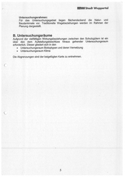 zw Stadt Wuppertal Untersuchungsrahmen: Für das Untersuchungsgebiet liegen flächendeckend die Natur- und Baudenkmale vor. Traditionelle Wegebeziehungen werden im Rahmen der Planung dargestellt. B. Untersuchungsräume Aufgrund der vielfältigen Wirkungsbeziehungen zwischen den Schutzgütern ist ein über den dem Aufstellungsbeschluss hinaus gehender UneTSUERUEGSEANT erforderlich. Dieser gliedert sich in den e Untersuchungsraum Biotoptypen und deren Vernetzung e Untersuchungsraum Klima . Die Abgrenzungen sind der beigefügten Karte zu entnehmen.