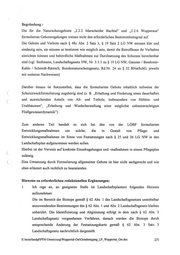 Begründung: Die für die Naturschutzgebiete „2.2.2 Marscheider Bachtal“ und „2.2.6 Wupperaue“ formulierten Gebotsregelungen weisen nicht den erforderlichen Bestimmtheitsgrad auf. Die Gebote und Verbote nach $ 48c Abs. 2 Satz 3, $ 19 Satz 2 LG NW müssen klar und eindeutig sein, sie müssen so bestimmt wie möglich sein, damit die Betroffenen ihr Verhalten einrichten können und behördliche Maßnahmen zur Durchsetzung des Schutzes berechenbar sind (vgl. Stollmann, Landschaftsgesetz NW, Nr. 3.3.3 zu $ 19 LG NW; Gassner / Bendomir- Kahlo / Schmidt-Räntsch, Bundesnaturschutzgesetz, Rd.Nr. 24 zu $ 22 BNatSchG, jeweils mit weiteren Nachweisen) Darüber hinaus ist festzustellen, dass die formulierten Gebote inhaltlich teilweise der Schutzzweckformulierung zugehörig sind (z. B. „Erhaltung und Förderung eines dauerhaften und ausreichenden Anteils von Alt- und Totholz, insbesondere von Höhlen- und Uraltbäumen“, „Erhaltung und Wiederherstellung einer möglichst unbeeinträchtigten Fließgewässerdynamik“) Zum anderen Teil handelt es sich bei den von der LÖBF formulierten Entwicklungsmaßnahmen um solche, die in Gestalt von Pflege- und Entwicklungsmaßnahmen im Sinne von Festsetzungen nach $ 25 und 26 LG NW in den Landschaftsplan aufgenommen werden sollen. Hierbei ist der Verweis auf konkrete Einzelregelungen und -maßnahmen in einem Pflegeplan zulässig. Eine Umsetzung durch Formulierung allgemeiner Gebote ist hier nicht sachgerecht und wie oben erläutert auch rechtlich zu beanstanden. Hinweise zu erforderlichen redaktionellen Ergänzungen: 1. Ich rege an, an geeigneter Stelle im Landschaftsplantext folgenden Hinweis aufzunehmen: Die im Bereich der Biotope gemäß $ 62 Abs. 1 des Landschaftsgesetzes unmittelbar anzuwendenden Bestimmungen des $ 62 Abs. 1 und Abs. 2 Landschaftsgesetz bleiben unberührt. Die Identifizierung und Abgrenzung erfolgt in dem nach $ 62 Abs. 3 Landschaftsgesetz vorgesehenen Verfahren, danach werden die Biotope durch entsprechende Änderung der Festsetzungskarte gemäß & 62 Abs. 3 Satz 3 Landschaftsgesetz nachrichtlich dargestellt. E\\texte\landpi\FFH-Umsetzung\Wuppertal-Ost\Genehmigung_LP_Wuppertal_Ost.doc 2/5