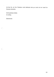 Ich bitte Sie, mir Ihre Teilnahme vorab telefonisch oder per e-mail mit der Anzahl der Personen mitzuteilen. Mit freundlichen Grüßen Im Auftrag (Raschewski) 2/2