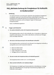 III B 3 - V 9905/22/10001 :002 2022/0550801, Anlage 2 FAQ „Befristete Senkung der Energiesteuer für Kraftstoffe im Straßenverkehr“ l. Einleitung Um Verbraucherinnen und Verbraucher angesichts stark gestiegener Energiekosten zu entlasten, wurde am 20. Mai 2022 das Gesetz verabschiedet, mit dem die Energiesteuer für Kraftstoffe befristet für drei Monate gesenkt wird. In unserer FAQ- Liste finden Sie Antworten auf die wichtigsten Fragen zur Änderung der Energiesteuersätze. Stand: <Veröffentlichungsdatum> ll. Fragen und Antworten 1. Für welche Kraftstoffe werden die Energiesteuersätze gesenkt? Die Energiesteuersätze sinken für alle Kraftstoffe, die an Tankstellen im Allgemeinen erworben werden können. Hierzu zählen neben Benzin und Diesel auch Flüssiggas (LPG) und Erdgas (CNG/LNG). 2. Wie hoch ist die Steuersenkung für die betreffenden Kraftstoffe? Die Energiesteuersätze sind befristet für drei Monate für die folgenden Kraftstoffe so weit gesenkt, wie es nach Europarecht erlaubt ist: e Benzin um 29,55 ct/Liter e Diesel um 14,04 ct/Liter e Erdgas (CNG/LNG) um 6,16 ct/kg e Flüssiggas (LPG) um 12,66 ct/Liter 3. Ab wann werden die Energiesteuersätze auf Kraftstoffe gesenkt? Die Energiesteuersätze werden zum 1. Juni 2022 gesenkt. 4. Wann werden Kraftstoffe an der Zapfsäule billiger? Die Energiesteuer ist lediglich ein Preisbestandteil des Kraftstoffpreises. Es obliegt daher den Kraftstofflieferanten, die geringere Steuerbelastung zeitgleich an die Endkunden weiterzugeben.