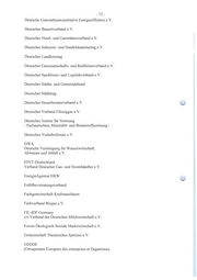 - 12 - Deutsche Unternehmensinitiative Energieeffizienz e.V. Deutscher Bauernverband e. V. Deutscher Hotel- und Gaststättenverband e.V. Deutscher Industrie- und Handelskammertage.V. Deutscher Landkreistag Deutscher Genossenschafts- und Raiffeisenverband e.V. Deutscher Speditions- und Logistikverband e.V. Deutscher Städte- und Gemeindebund Deutscher Städtetag Deutscher Steuerberaterverband e.V. Deutscher Verband Flüssiggas e. V. Deutsches Institut für Normung - Fachausschuss Mineralöl- und Brennstoffnormung - Deutsches Verkehrsforum e.V. DWA Deutsche Vereinigung für Wasserwüischaft, Abwasser und Abfalle.V. EFET-Deutschland Verband Deutscher Gas- und Stromhändler e.V. EnergieAgentur.NR W Erdöl bevorratungsverband Fachgemeinschaft Kraftmaschinen Fachverband Biogase.V. FIL-IDF Germany c/o Verband der Deutschen Milchwirtschaft e.V. Forum Ökologisch-Soziale Marktwirtschaft e.V. Gemeinschaft Thermisches Spritzen e.V. GEODE (Groupement Europeen des entreprises et Organismes