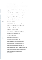 - 13 - de Distribution d'Energie) Gesamtverband der deutschen Textil- und Modeindustrie e.V. Gesamtverband Steinkohle e.V. Gütegemeinschaft Sekundärbrennstoffe und Recyclingholz e.V. Fachbereich 6 Handelsverband Deutschland - der Einzelhandel e.V. Holzenergie-Fachverband Baden-Württemberg e.V. Interessengemeinschaft der thermischen Abfallbehandlungsanlagen in Deutschland e.V. Maschinenringe Deutschland GmbH Milchindustrie-Verbande.V. Mittelständische Energiewirtschaft Deutschland e.V. Mittelstandsverband abfall basierter Kraftstoffe e. V. Private Brauereien Deutschland e.V. Unabhängiger Tanklagerverband e.V. Union zur Förderung der Oel- und Proteinpflanzen e.V. Unternehmerverband Deutschland e.V. Verband Chemiehandel e.V. Verband der Automobilindustrie e.V. Verband der Chemischen Industrie e.V. Verband der Deutschen Biokraftstoffindustrie e.V. Verband der deutschen Holzwerkstoffindustrie e.V. Verband der Güterwagenhalter in Deutschland e.V. Verband der Industriellen Energie- und Kraftwirtschaft e.V. Verband der Internationalen Kraftfahrzeughersteller e.V. Verband der ölsaatenverarbeitenden Industrie in Deutschland e.V.