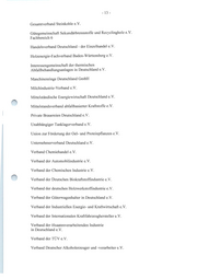 - 13 - Gesamtverband Steinkohle e.V. Gütegemeinschaft Sekundärbrennstoffe und Recyclingholz e.V. Fachbereich 6 Handelsverband Deutschland - der Einzelhandel e.V. Holzenergie-Fachverband Baden-Württemberg e.V. Interessengemeinschaft der thermischen Abfallbehandlungsanlagen in Deutschland e.V. Maschinenringe Deutschland GmbH Milchindustrie-Verband e.V. Mittelständische Energiewirtschaft Deutschland e.V. Mittelstandsverband abfall basierter Kraftstoffe e.V. Private Brauereien Deutschland e.V. Unabhängiger Tanklagerverband e.V. Union zur Förderung der Oel- und Proteinpflanzen e.V. Unternehmerverband Deutschland e.V. Verband Chemiehandel e.V. Verband der Automobilindustrie e.V. Verband der Chemischen Industrie e.V. Verband der Deutschen Biokraftstoffindustrie e.V. Verband der deutschen Holzwerkstoffindustrie e.V. Verband der Güterwagenhalter in Deutschland e.V. Verband der Industriellen Energie- und Kraftwirtschaft e.V. Verband der Internationalen Kraftfahrzeughersteller e.V. Verband der ölsaatenverarbeitenden Industrie in Deutschland e.V. Verband der TÜV e.V. Verband Deutscher Alkoholerzeuger und -verarbeiter e.V.