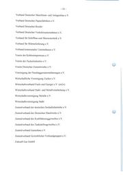 - 14 - Verband Deutscher Maschinen- und Anlagenbau e.V. Verband Deutscher Papierfabriken e.V. Verband Deutscher Reeder Verband Deutscher Verkehrsunternehmen e.V. Verband für Schiffbau und Meerestechnik e.V. Verband für Wärmelieferung e.V. Verband kommunaler Unternehmen e.V. Verein der Kohlenimporteure e. V. Verein der Zuckerindustrie e.V. Verein Deutscher Zementwerke e. V. Vereinigung der N assbaggerunternehmungen e.V. Wirtschaftliche Vereinigung Zuckere.V. Wirtschaftsverband Fuels und Energie e.V. (en2x) Wirtschaftsverband Stahl- und Metallverarbeitung e.V. Wirtschaftsvereinigung Metalle e.V. Wirtschaftsvereinigung Stahl Zentralverband der deutschen Seehafenbetriebe e.V. Zentralverband des Deutschen Handwerks e.V. Zentralverband des Kraftfahrzeuggewerbes e.V. Zentralverband des Tankstellengewerbes e.V. Zentralverband Gartenbau e.V. Zentralverband Gewerblicher Verbundgruppen e.V. Zukunft Gas GmbH