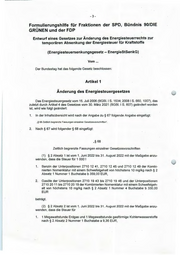 Deutschen Bundestages einzubringenden Entwurf eines Gesetzes zur Änderung des Energie-