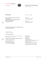 Bundestags am 11. Mai 2022 zu. Der Entwurf ist allein dem BMF zugegangen und deshalb Dritten nicht zugänglich zu
