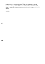 -3- Der Bundesrat soll in seiner 1021. Sitzung am 20. Mai 2022 beschließen, zu dem vom Deutschen Bundestag am 19. Mai 2022 zu verabschiedenden Gesetz einen Antrag gemäß Artikel 77 Absatz 2 des Grundgesetzes nicht zu stellen. Eine Ausfertigung kann im Anschluss erfolgen. Dr. Hufen