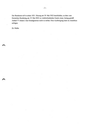 -3- Der Bundesrat soll in seiner 1021. Sitzung am 20. Mai 2022 beschließen, zu dem vom Deutschen Bundestag am 19. Mai 2022 zu verabschiedenden Gesetz einen Antrag gemäß Artikel 77 Absatz 2 des Grundgesetzes nicht zu stellen. Eine Ausfertigung kann im Anschluss erfolgen. Dr. Hufen