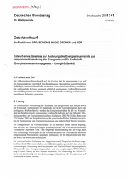 2022/0576716 | Anlage 3 Deutscher Bundestag Drucksache 20/1741 20. Wahlperiode 10.05.2022 Gesetzentwurf der Fraktionen SPD, BÜNDNIS 90/DIE GRÜNEN und FDP Entwurf eines Gesetzes zur Änderung des Energiesteuerrechts zur temporären Absenkung der Energiesteuer für Kraftstoffe (Energiesteuersenkungsgesetz —- EnergieStSenkG) A. Problem und Ziel Der völkerrechtswidrige Angriff auf die Ukraine hat die angespannte Lage auf den Energiemärkten verschärft. Die Bestrebungen, Deutschland schnellstmöglich unabhängig von russischem Erdöl zu machen, kann diese Entwicklung verstärken. Die aufgrund des Krieges nochmals erheblich gestiegenen Kraftstoffpreise sind für viele Bürgerinnen und Bürger sowie die Wirtschaft kurzfristig zu einer unvor- hersehbaren Belastung geworden. B. Lösung Zur kurzfristigen Abfederung der Belastung der Bürgerinnen und Bürger sowie der Wirtschaft, insbesondere im Handwerk und in der Logistikbranche, durch die gestiegenen Kraftstoffpreise werden die Energiesteuersätze für die im Wesentli- chen im Straßenverkehr verwendeten Kraftstoffe befristet auf die Höhe der Min- deststeuersätze der Energiesteuerrichtlinie (Richtlinie 2003/96/EG des Rates vom 27. Oktober 2003 zur Restrukturierung der gemeinschaftlichen Rahmenvorschrif- ten zur Besteuerung von Energieerzeugnissen und elektrischem Strom) reduziert. Die Energiesteuer als Verbrauchsteuer ist als indirekte Steuer darauf angelegt, dass sie von den Steuerpflichtigen grundsätzlich auf die Verbraucherinnen und Verbraucher abgewälzt wird. Eine temporäre Steuersenkung hat zur Folge, dass eine vollständige Weitergabe an die Verbraucherinnen und Verbraucher auch eine entsprechende Preissenkung und damit Entlastung für die Bürgerinnen und Bür- ger sowie die Wirtschaft ermöglicht. Zur weitergehenden Entlastung der Bürgerinnern und Bürger hat die Regierungs- koalition Ende März dieses Jahres ein Maßnahmenpaket geschnürt, das neben der dreimonatigen Absenkung der Energiesteuer auf Kraftstoffe auf das europäische Mindestmaß eine Energiepreispauschale und ein vergünstigtes ÖPNV-Ticket (sog. 9-Euro-Ticket) für drei Monate beinhaltet. Die Umsetzung des 9-Euro-Ti- ckets soll gleichzeitig mit der dreimonatigen Absenkung der Energiesteuer auf Kraftstoffe wirksam werden.