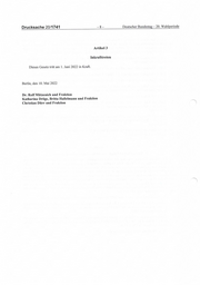 Drucksache 20/1741 -8- Deutscher Bundestag — 20. Wahlperiode Artikel 3 Inkrafttreten Dieses Gesetz tritt am 1. Juni 2022 in Kraft. Berlin, den 10. Mai 2022 Dr. Rolf Mützenich und Fraktion Katharina Dröge, Britta Haßelmann und Fraktion Christian Dürr und Fraktion