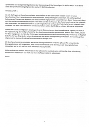 Hoffbauer zu senden. Zur Frist: PStin H bittet nachdrücklich um Beachtung der Frist; Fristverlängerungen sind nicht zu gewähren. Ist absehbar, dass die Frist wegen noch ausstehender Billigungen nicht einzuhalten ist, ist der Sprechzettel mit einem entsprechenden Vorbehaltsvermerk so zu übersenden, wie er auf den Dienstweg gegeben wurde. Sollten sich im Nachgang zum zugesandten Sprechzettel bis zur Sitzung Änderungen im Sachstand ergeben, ist der Sprechzettel in aktualisierter Fassung bis spätestens zum Sitzungsvortag, 15 Uhr, zu senden. Die Referate sind gehalten, selbst bzw. entsprechend etwaiger für sie geltender Vorgaben zu entscheiden, ob und inwieweit Sprechzettel zu billigen sind. Soweit sich die Billigung nicht aus der Zuleitung ergibt, ist sie im Sprechzettel zu vermerken oder mit der Übersendung ist darauf hinzuweisen. Bei der Entscheidung kann eine Gewichtung der Tagesordnungspunkte helfen: Gesetzesvorhaben in der Federführung des BMF und des Finanzausschusses, Selbstbefassungen und anlassbezogene Unterrichtungen (z.B. ECOFIN, Institutionen der int. Zusammenarbeit) sowie sog. TOP „O“-Themen sind stets Beratungsvorlagen von besonderer politischer Bedeutung. Mitberatungen, Unionsdokumente und sonstige Unterrichtungen sind dies im Regelfall oder zumindest oft nicht. Der Gesprächsführungsvorschlag im Sprechzettel soll mit knapp und präzise formulierten politischen Kernaussagen eingeleitet werden. Diese sollen in der Anzahl auf das Nötigste und Sinnvollste beschränkt sein. Die Kernaussagen sollen insbesondere aktuelle politische Entwicklungen und Sachstände wiedergeben. Dem Abschnitt mit den Kernaussagen sollen dann die übrigen Aussagen folgen. Ein Muster für den Sprechzettel mit redaktionellen Hinweisen ist beigefügt. Dem Sprechzettel sind beratungsrelevante Sitzungsunterlagen beizufügen, die in der Tagesordnung nicht genannt sind. Die in der Tagesordnung genannten Sitzungsunterlagen liegen mir bereits vor oder werden mir noch rechtzeitig vorliegen; sie müssen den Sprechzetteln nicht beigefügt werden. Anlagen zum Sprechzettel sind als eigenständige Dateien der Übersendungs-E-Mail beizufügen. Sie dürfen NICHT in die Word- Datei des Sprechzettels eingefügt werden (siehe VV-BMF-Bürodienste). Hinweis zu TOP 1: Da sich die Fragen der Ausschussmitglieder ausschließlich an den Gast richten werden, bedarf es keines Sprechzettels. PStin H bittet jedoch um einen formlosen, stichpunktartigen Kurzvermerk mit solchen politisch bedeutsamen Themen oder Aspekten, die voraussichtlich angesprochen werden könnten. Dieser Kurzvermerk dient auch den vorbereitenden Besprechungen in der KoRu und der AG Finanzen. Das Ausschusssekretariat hat mitgeteilt, dass unverändert ein Zeitfenster von 9 bis 11 Uhr vorgesehen ist. Ich habe dem Sekretariat bereits mitgeteilt, dass zu diesem TOP auch PSt T teilnehmen könnte. Das Nähere sollten die PSt-Büros mit dem Sekretariat besprechen. Sollten den Ausschussmitgliedern beratungsrelevante Dokumente vom Ausschusssekretariat zugehen, die nicht in der Tagesordnung, aber im Sprechzettel für den Ausschussvorsitzenden genannt sind, leite ich diese weiter, sobald mir diese zugegangen sind (z.B. bei EU-Vorlagen bundestagsinterne Sachstandsberichte, PE2-Vermerke). Im Regelfall bedarf es hier aus Zeitgründen keiner Aktualisierung von bereits vorliegenden Sprechzetteln, aber es ist zu prüfen, ob gesonderte, kurze und reaktive Sprechvermerke zu fertigen sind. Mit dem Sprechzettel ist mitzuteilen, wer an der Sitzung teilnehmen wird. Dies gilt auch für nur zuhörende Sitzungsteilnehmer. Ich bin gehalten, dem Ausschusssekretariat vorab der Sitzung alle Sitzungsteilnehmer mitzuteilen, weil es sich um eine nicht öffentliche Sitzung handelt. Sollten andere oder weitere Referate als die hier adressierten zuständig sein, möchten Sie diese Anforderung entsprechend weiterleiten und mich und Herrn Hoffbauer dabei Cc. adressieren. Jansen