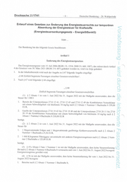 Drucksache 20/1741 -4- Deutscher Bundestag — 20. Wahlperiode mE me #7 Deutscher Bundestag - 20. Wahlperiode Entwurf eines Gesetzes zur Änderung des Energiesteuerrechts zur temporären Absenkung der Energiesteuer für Kraftstoffe nn () (Energiesteuersenkungsgesetz - EnergieStSenkG) — n: O Vom ... —, SD) 5 N Der Bundestag hat das folgende Gesetz beschlossen: o = Artikel 1 ö = OD Änderung des Energiesteuergesetzes | Das Energiesteuergesetz vom 15. Juli 2006 (BGBl. IS. 1534: 2008 I S. 660. 1007), das zuletzt durch Artikel _ 4 des Gesetzes vom 30. März 2021 (BGBl. IS. 607) geändert worden ist, wird wie folgt geändert: ZQ u , I. Inder Inhaltsübersicht wird nach der Angabe zu $ 67 folgende Angabe eingefügt: a . . . .n Gh, „$ 68 Zeitlich begrenzte Fassungen einzelner Gesetzesvorschriften“. en x ap . . pi u 2. Nach $ 67 wird folgender $ 68 eingefügt: Fe IR „868 > Rn Zeitlich begrenzte Fassungen einzelner Gesetzesvorschriften en (1) $ 2 Absatz |] ist vom 1. Juni 2022 bis 31. August 2022 mit der Maßgabe anzuwenden, dass die nd Steuer für 1 000 1 (D I. Benzin der Unterpositionen 2710 12 41, 2710 12 45 und 2710 12 49 der Kombinierten Nomenklatur mn mit einem Schwefelgehalt von höchstens 10 mg/kg nach $ 2 Absatz I Nummer 1 Buchstabe b 359,00 ©) EUR, I 2. Gasöle der Unterpositionen 2710 19 43 bis 2710 19 48 und der Unterpositionen 2710 20 11 bis 2710 On 20 19 der Kombinierten Nomenklatur mit einem Schwefelgehalt von höchstens 10 mg/kg nach $ 2 S Absatz | Nummer 4 Buchstabe b 330,00 EUR FR \ W beträgt. J (2) $ 2 Absatz 2 ist vom 1. Juni 2022 bis 31. August 2022 mit der Maßgabe anzuwenden, dass die Steuer für I N * ar + 1 3 l. 1 Megawattstunde Erdgas und 1 Megawattstunde gasförmige Kohlenwasserstoffe nach $ 2 Absatz2 _' | Nummer | Buchstabe a 9,36 EUR, ab i j . ' on 2. 1.000 Kilogramm Flüssiggase unvermischt mit anderen Energieerzeugnissen nach $ 2 Absatz 2 Num- n mer 2 Buchstabe e 125,00 EUR = beträgt. _ (3) $ 47a Absatz 2 Satz 1 Nummer 1 ist mit der Maßgabe anzuwenden, dass keine Steuerentlastung \\ ) für nach $ 2 Absatz 1 Nummer 4 Buchstabe b versteuerte und vom 1. Juni 2022 bis 31. August 2022 bezogene Energieerzeugnisse gewährt wird. (D (4) 856 ist mit der Maßgabe anzuwenden, dass keine Steuerentlastung für vom 1. Juni 2022 bis 31. io August 2022 bezogene a) l. Benzine nach $ 2 Absatz 1 Nummer | Buchstabe b,
