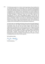 SEITE 3 Die Bundesregierung sieht den von Sachsen-Anhalt eingeschlagenen Weg als zielführend für die Umsetzung des EPPSG an. Die Einlassungen der das Land Sachsen-Anhalt beratenden Kanzlei zeigen diejenigen Punkte auf, die im Rahmen der Umsetzung der Antragsplattform einer genaueren Betrachtung bedürfen. Unser gemeinsames Ziel ist es, mit dem Angebot einer Antragsplattform eine möglichst einfache, unbürokratische und schnelle Auszahlung der Energiepreispauschale zu ermöglichen und damit sowohl die berechtigten Personen als auch die Länder bestmöglich zu unterstützen. Gerade auch unter diesem Aspekt hat die Bundesregierung die oben zitierte Protokollerklärung abgegeben. Die erste Ziffer der Protokollerklärung hat der Bund bereits eingelöst. Die Finanzierung der Plattform durch den Bund ist sichergestellt. Zugleich wird der Bund die Finanzierung der Support-Hotline übernehmen und damit an seiner Unterstützungszusage über den Aufbau und Betrieb der Plattform hinaus festhalten. Zugleich bietet der Bund die in Ziffer 2 der Protokollerklärung zugesagte zentrale Auszahlungsstelle durch die Einbindung der Bundeskasse an. Die Länder zeigen in den regelmäßig stattfindenden Abstimmungsrunden großes Engagement. Dies zeigt, dass auch in den Ländern das Bestreben groß ist, die Umsetzung des EPPSG voranzutreiben. Dieses Ziel eint Bund und Länder. Zugleich haben die Länder die aufgeworfenen Rechtsfragen direkt an den Bund adressiert. Mit der vorliegenden Einordung zeigt die Bundesregierung den aus ihrer Sicht gangbaren Weg auf. Um dieses ambitionierte Projekt zeitnah zu einem erfolgreichen Abschluss zu führen, müssen die erforderlichen Rechtsetzungs- und Prozessschritte in den Ländern zügig erfolgen. Mit der durch das Land Sachsen-Anhalt vorgelegten Musterverordnung haben die Länder aus Sicht der Bundesregierung eine sehr gute Grundlage an die Hand bekommen. Nun gilt es, auf dieser Grundlage gemeinsam den weiteren Prozess zu gestalten. Mit freundlichen Grüßen in jr Bun Dr. Jens Brandenburg