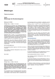 1034 – Mitteilungen, Telekommunikation, Teil A, Mitteilungen der Bundesnetzagentur – 13 2018