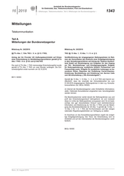 1348 – Mitteilungen, Telekommunikation, Teil A, Mitteilungen der Bundesnetzagentur – 16 2018