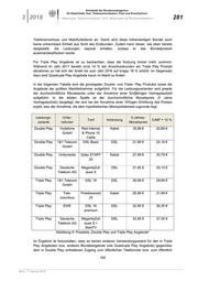 Abbildung 7: Preisliste „Nicht in Paketen angebotene Zugänge/Single Play und Double Play“