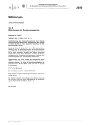 16 2017 – Mitteilungen, Telekommunikation, Teil A, Mitteilungen der Bundesnetzagentur – 2991