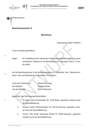 der Bundesnetzagentur vom …..2017 hat die Beschlusskammer dem Netzbetreiber und