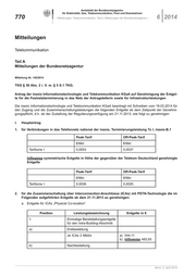 770 – Mitteilungen, Telekommunikation, Teil A, Mitteilungen der Bundesnetzagentur – 6 2014
