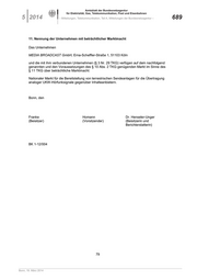 5 2014 – Mitteilungen, Telekommunikation, Teil A, Mitteilungen der Bundesnetzagentur – 689