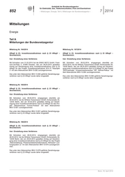 852 – Mitteilungen, Energie, Teil A, Mitteilungen der Bundesnetzagentur – 7 2014