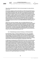 BROADCAST GmbH die Beibehaltung der bisherigen Empfangsgebiete, was gerade für die