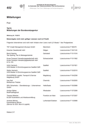 652 – Mitteilungen, Post, Teil A, Mitteilungen der Bundesnetzagentur – 5 2013