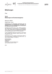 20 2013 – Mitteilungen, Post, Teil A, Mitteilungen der Bundesnetzagentur – 3273
