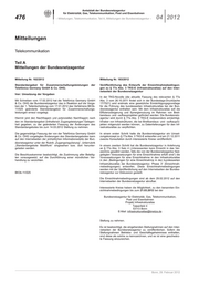 476 – Mitteilungen, Telekommunikation, Teil A, Mitteilungen der Bundesnetzagentur – 04 2012