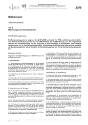 13 2012 – Mitteilungen, Telekommunikation, Teil B, Mitteilungen der Diensteanbieter – 2309
