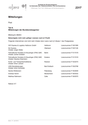 13 2012 – Mitteilungen, Telekommunikation, Teil B, Mitteilungen der Diensteanbieter – 2311
