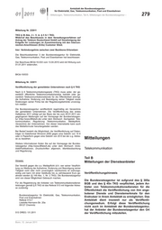 01 2011 – Mitteilungen, Telekommunikation, Teil A, Mitteilungen der Bundesnetzagentur – 279