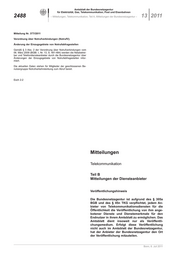 2486 – Mitteilungen, Telekommunikation, Teil A, Mitteilungen der Bundesnetzagentur – 13 2011