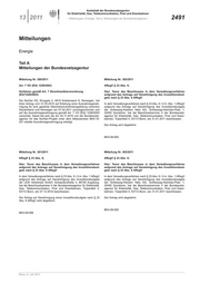 2492 – Mitteilungen, Energie, Teil A, Mitteilungen der Bundesnetzagentur – 13 2011
