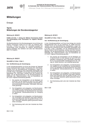 3980 – Mitteilungen, Energie, Teil A, Mitteilungen der Bundesnetzagentur – 22 2011